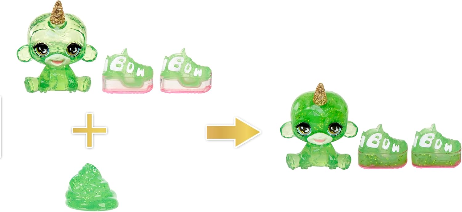 Cute Magical Pet-- Meet the glittery monkey with a horn (like a small monkey-unicorn!). Fill her head with the DIY slime and see her change colors magically!