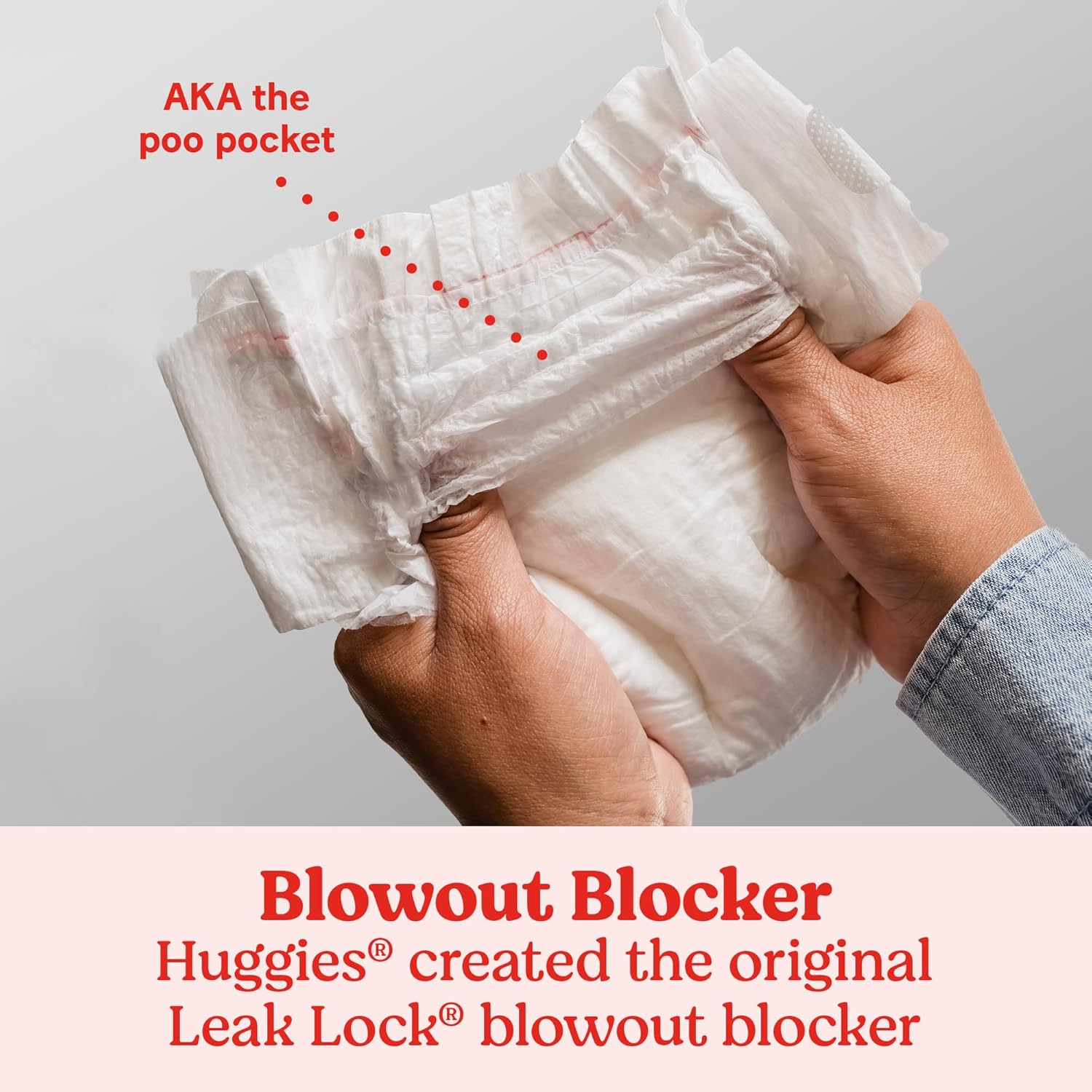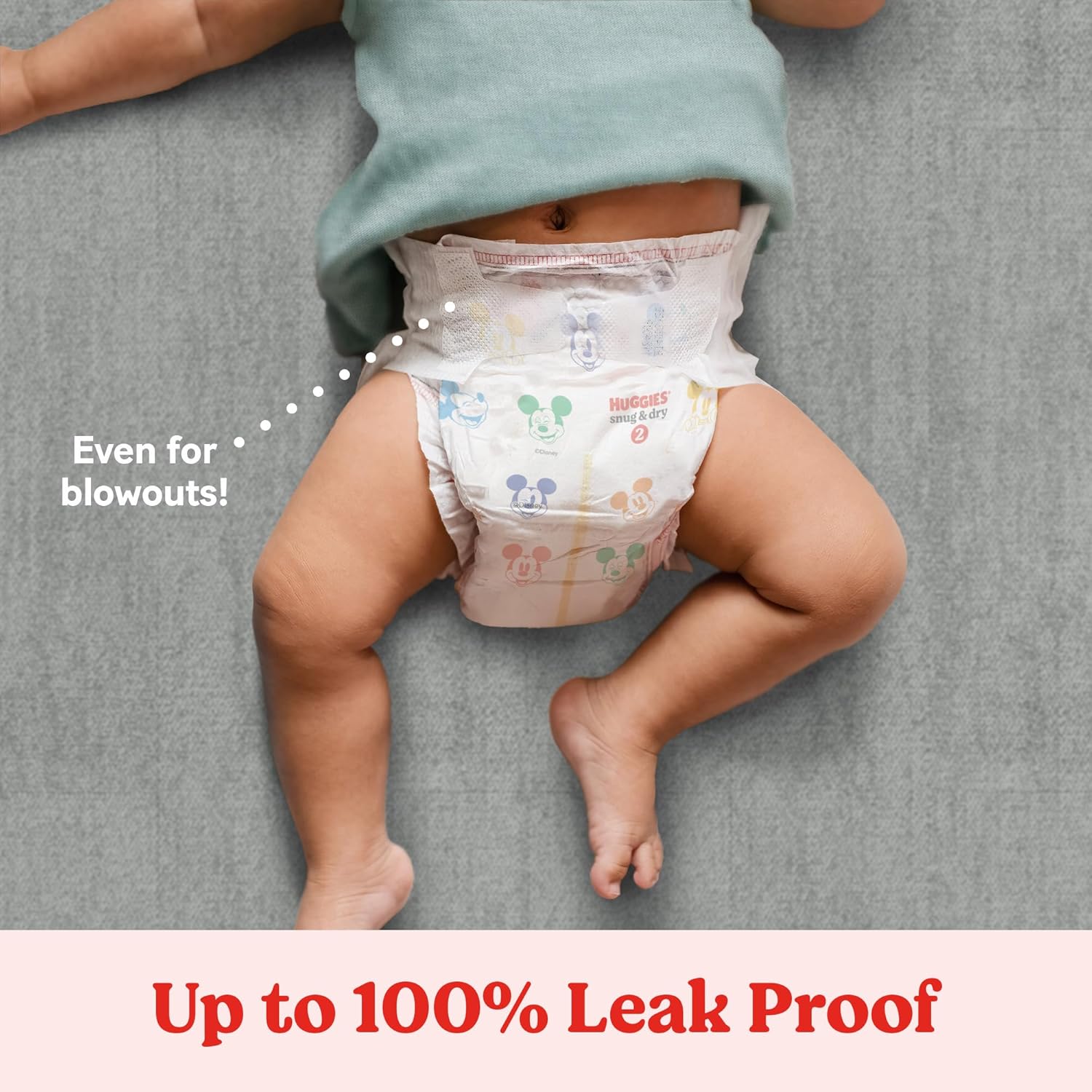 Messy situations? No problem. Huggies Snug & Dry Diapers are engineered for up to 100% leakproof protection, even from those unexpected blowouts. Featuring the Leak Lock Blowout Blocker, these diapers help keep messes contained, saving you from those outfit changes and extra laundry loads.