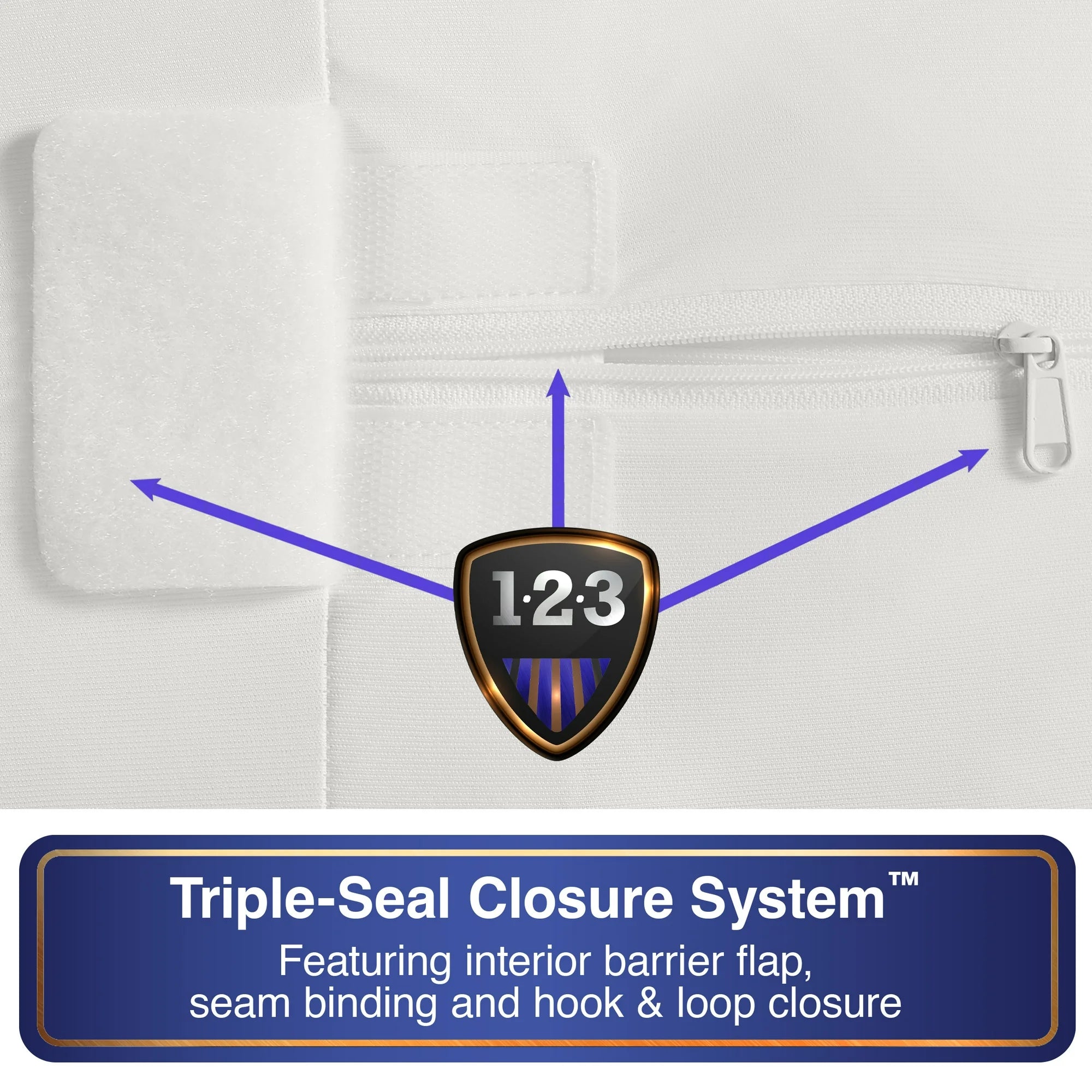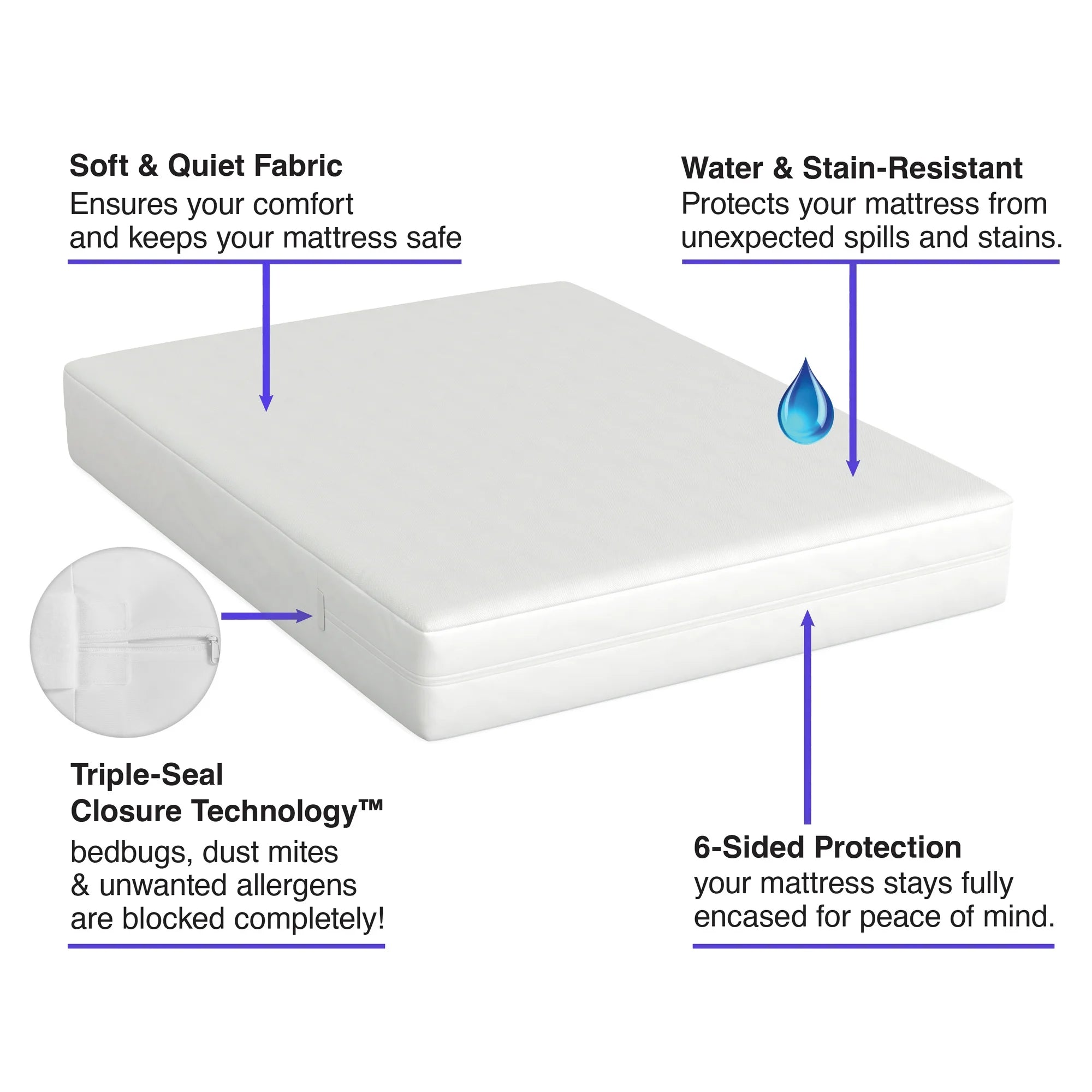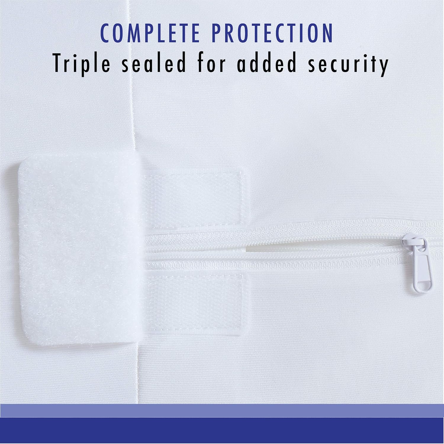 Presenting the All-in-One Quiet Water Resistant Zip-Up Mattress Protector-- the ultimate defense system for your bed mattress. Engineered with a smart triple-seal closure and a soft, noiseless external layer, this queen-sized encasement is your new go-to for relaxing, clean sleep.